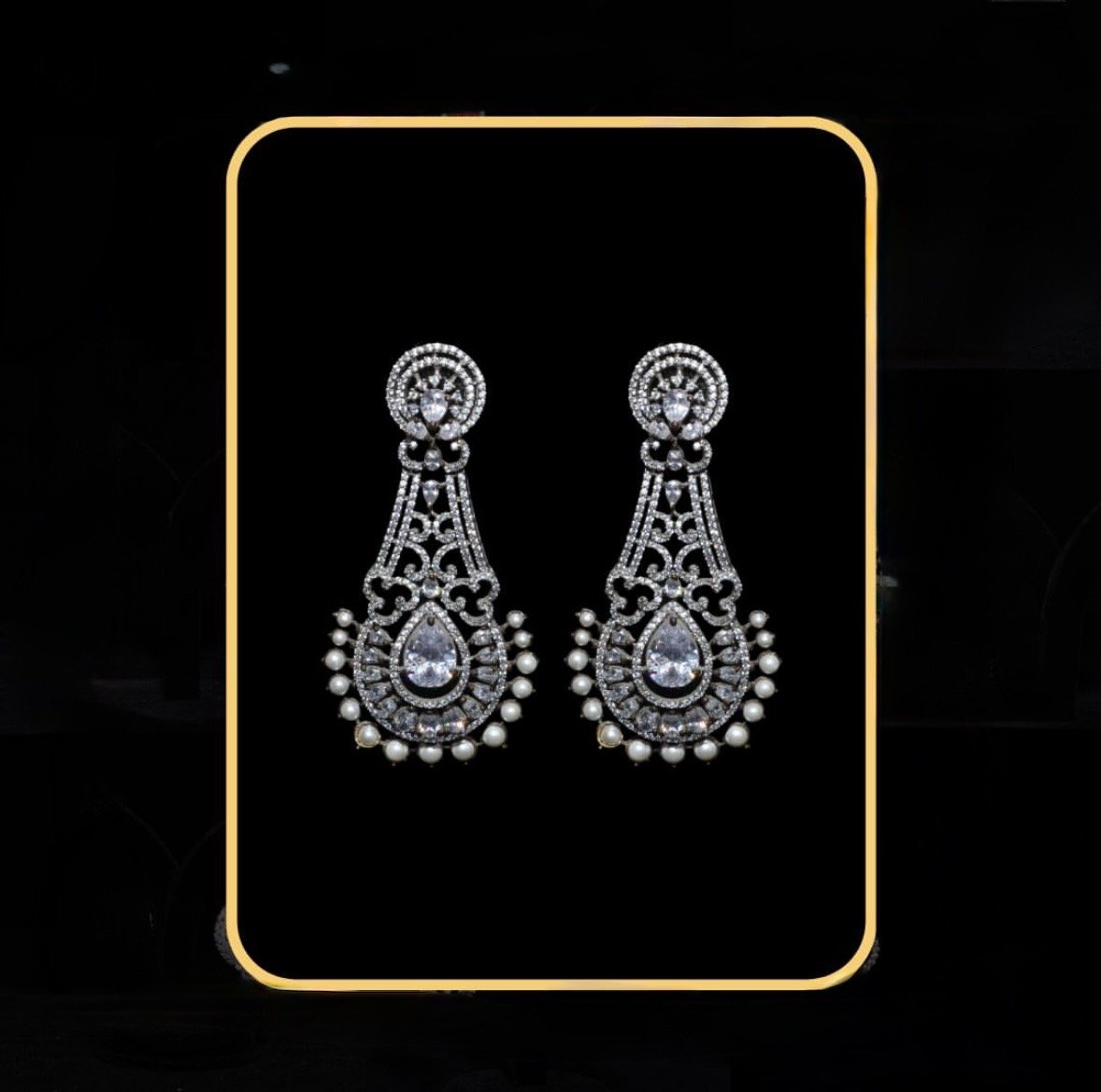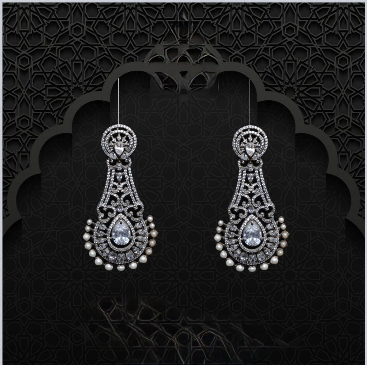 Light up every look with our fashionable DAZZLING SILVER EAR RING. Inspired by the jewelry of Udaipur. Featuring amazing silver finish with sparkling zirconia arranged beautifully on the earrings. Perfect for night parties and events.