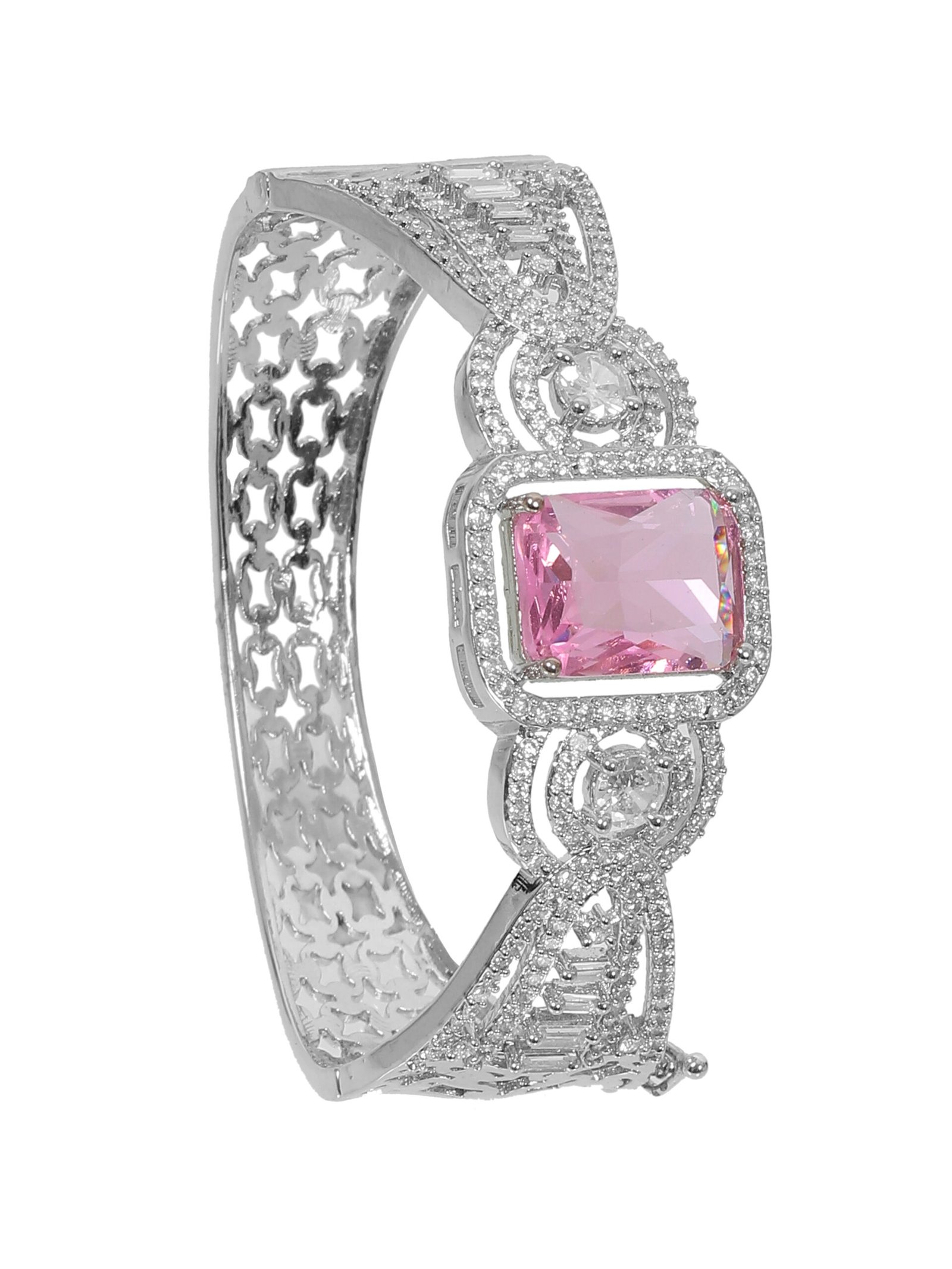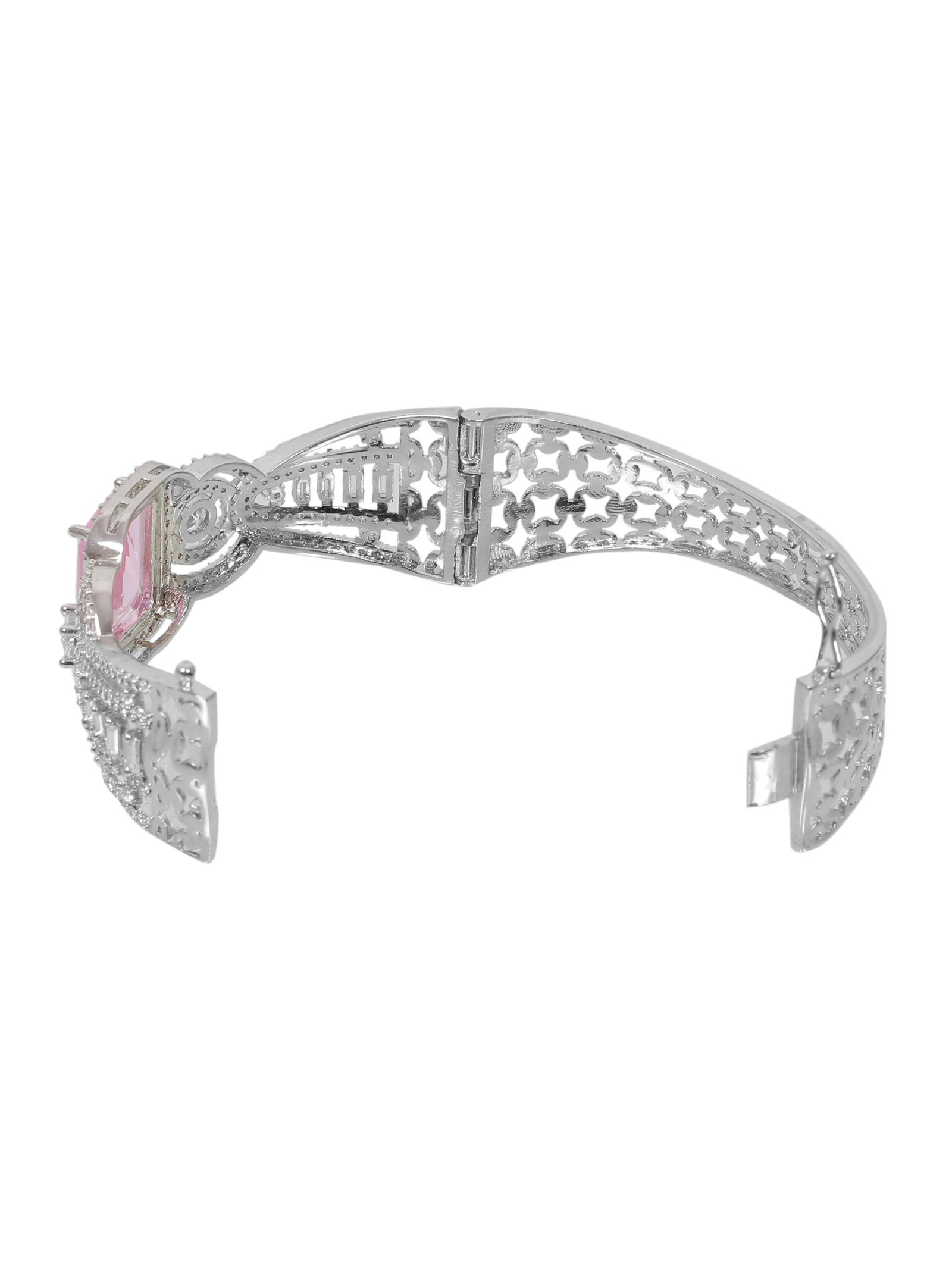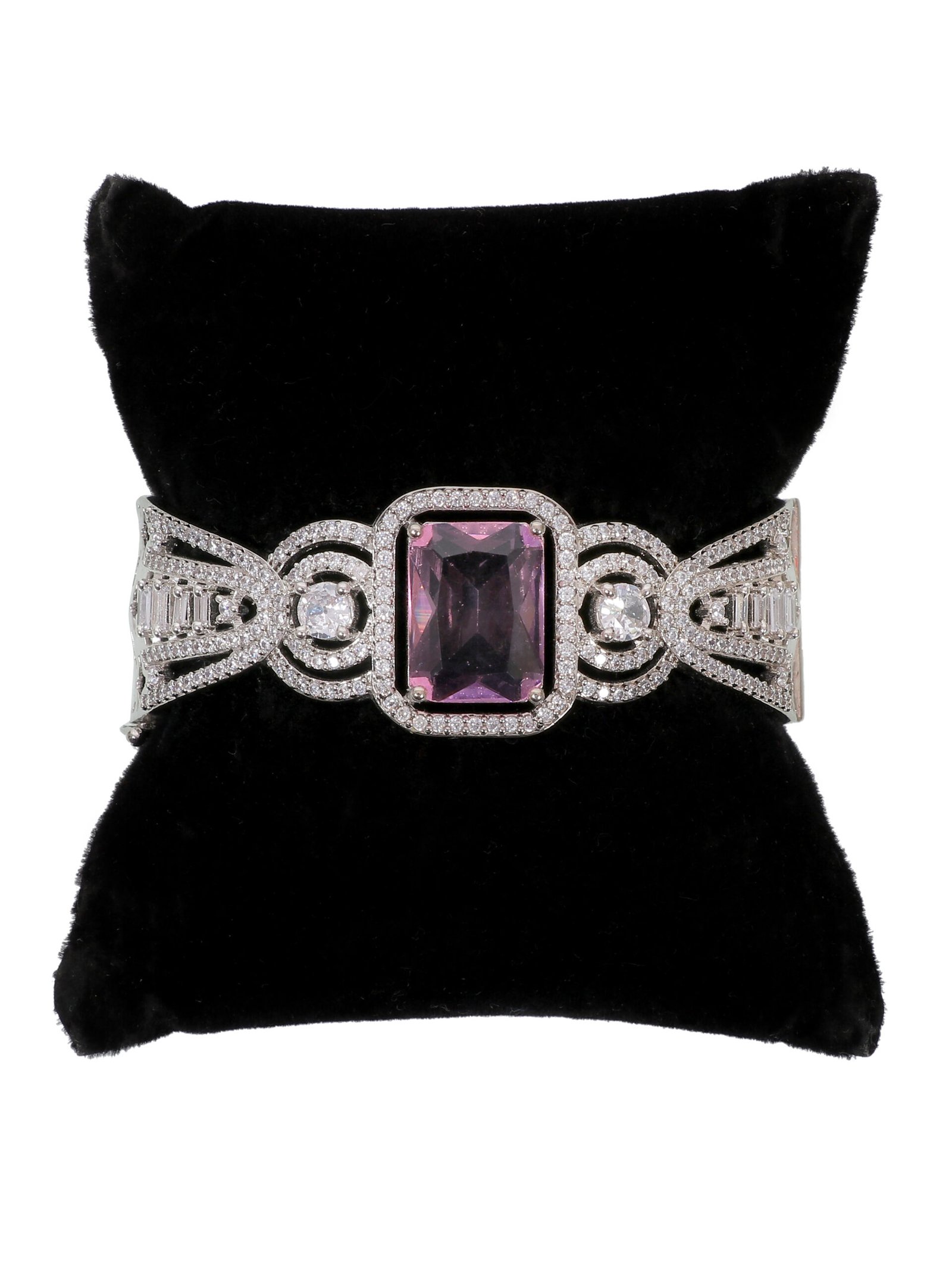 Make a bold style statement with this stunning bracelet featurin a central amethyst-hued gemstone framed by intricate Diamond like detailing designed with an Ornate pattern and crafted to perfection. this bracelet blends sophistication and modern elegance. perfect for special occasion it’s adds a touch of luxury to any outfit. comes with a comfortable, adjustable fit for all day wear. Idol for gifting or as a signature accessory for your collection