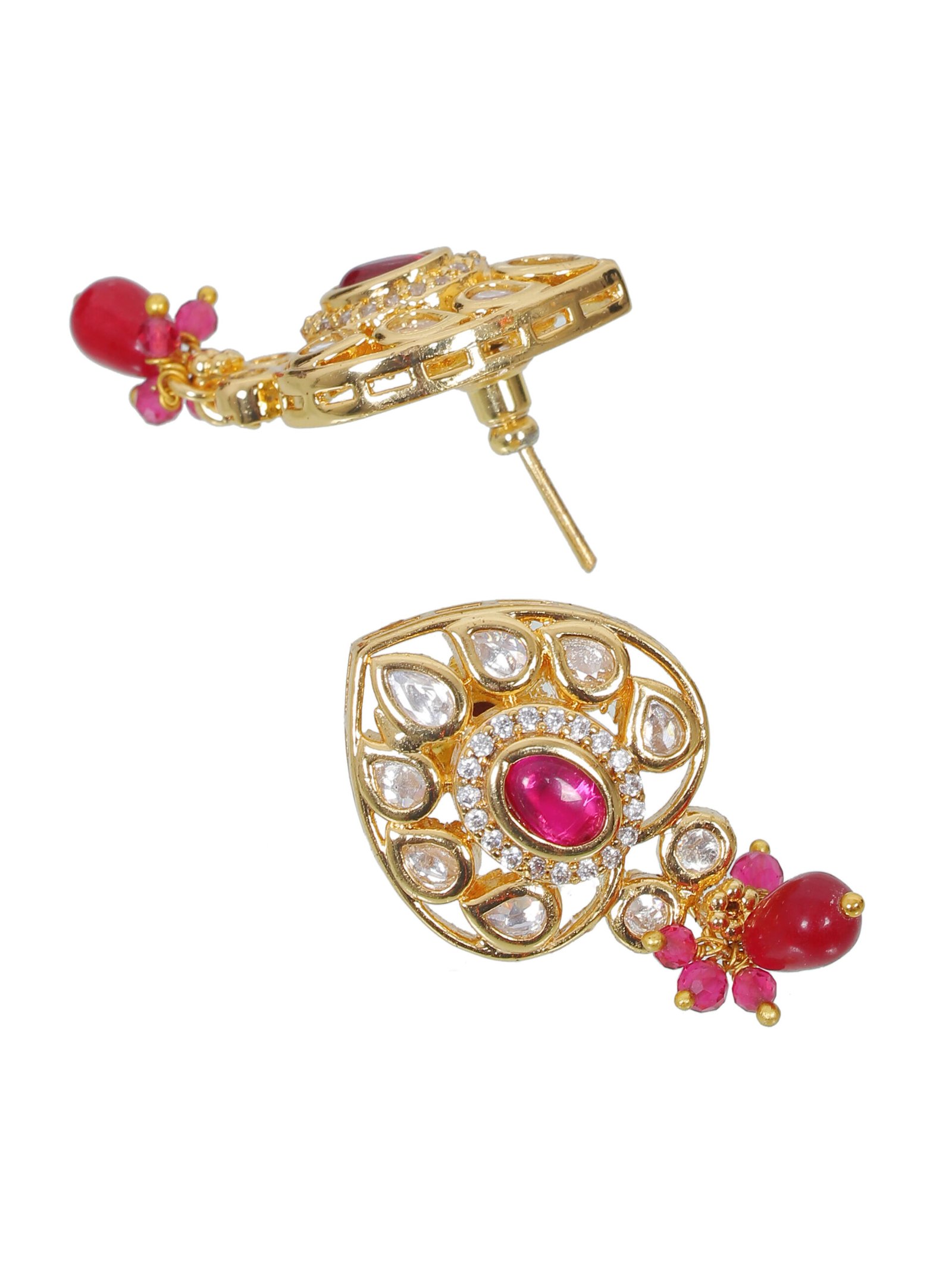 exqisite kundan and ruby dangle earring. featuring a teardrop