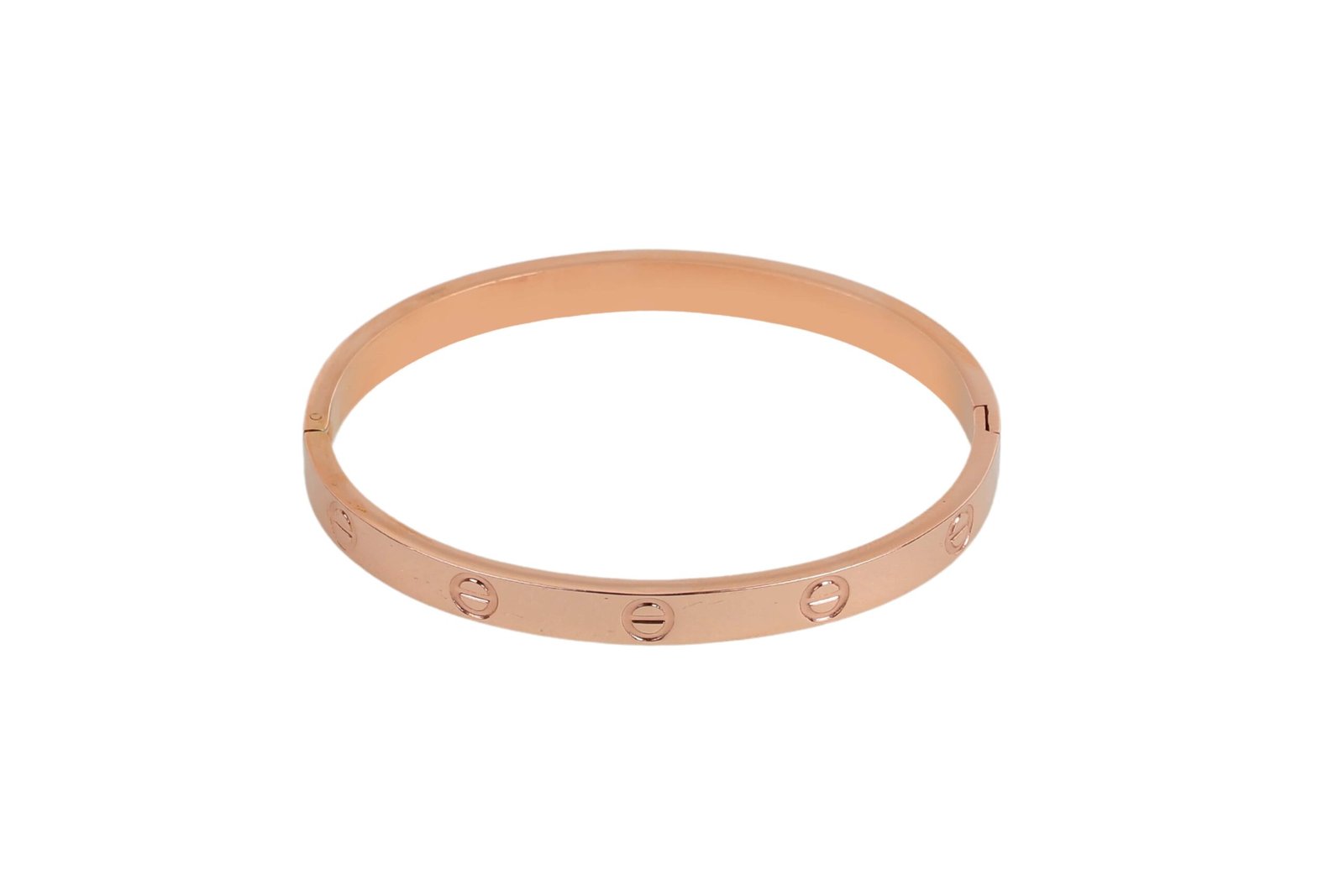 Its hinged design ensures a secure and comfortable fit, allowing for easy wear and removal. The minimalist aesthetic of the Eternal Rose Gold Bracelet makes it an ideal piece for layering with other jewelry or wearing alone for a chic, understated look.