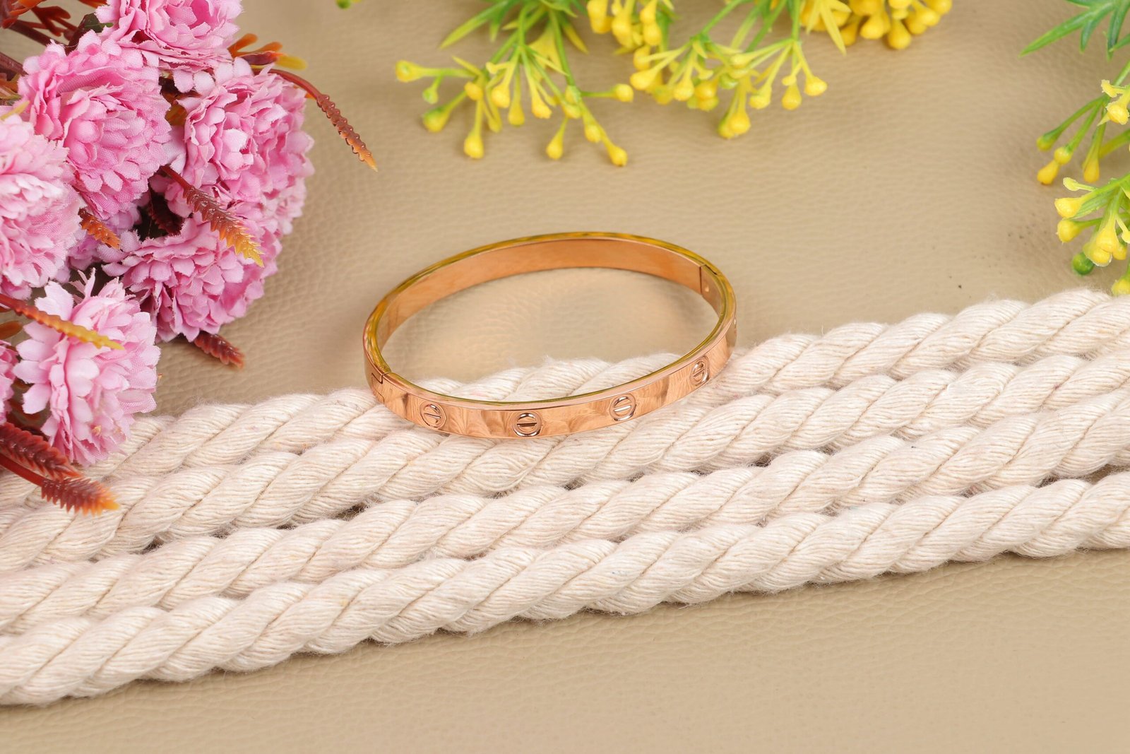 The Eternal Rose Gold Bracelet is a timeless piece that exudes elegance and sophistication. Crafted from premium stainless steel and finished with a luxurious rose gold plating, this bracelet is designed to make a statement while complementing any attire. The bracelet features a series of engraved screw motifs that add a subtle yet distinctive touch to its sleek, polished surface. The rose gold hue offers a warm and inviting glow, making it a versatile accessory that can be worn day or night.