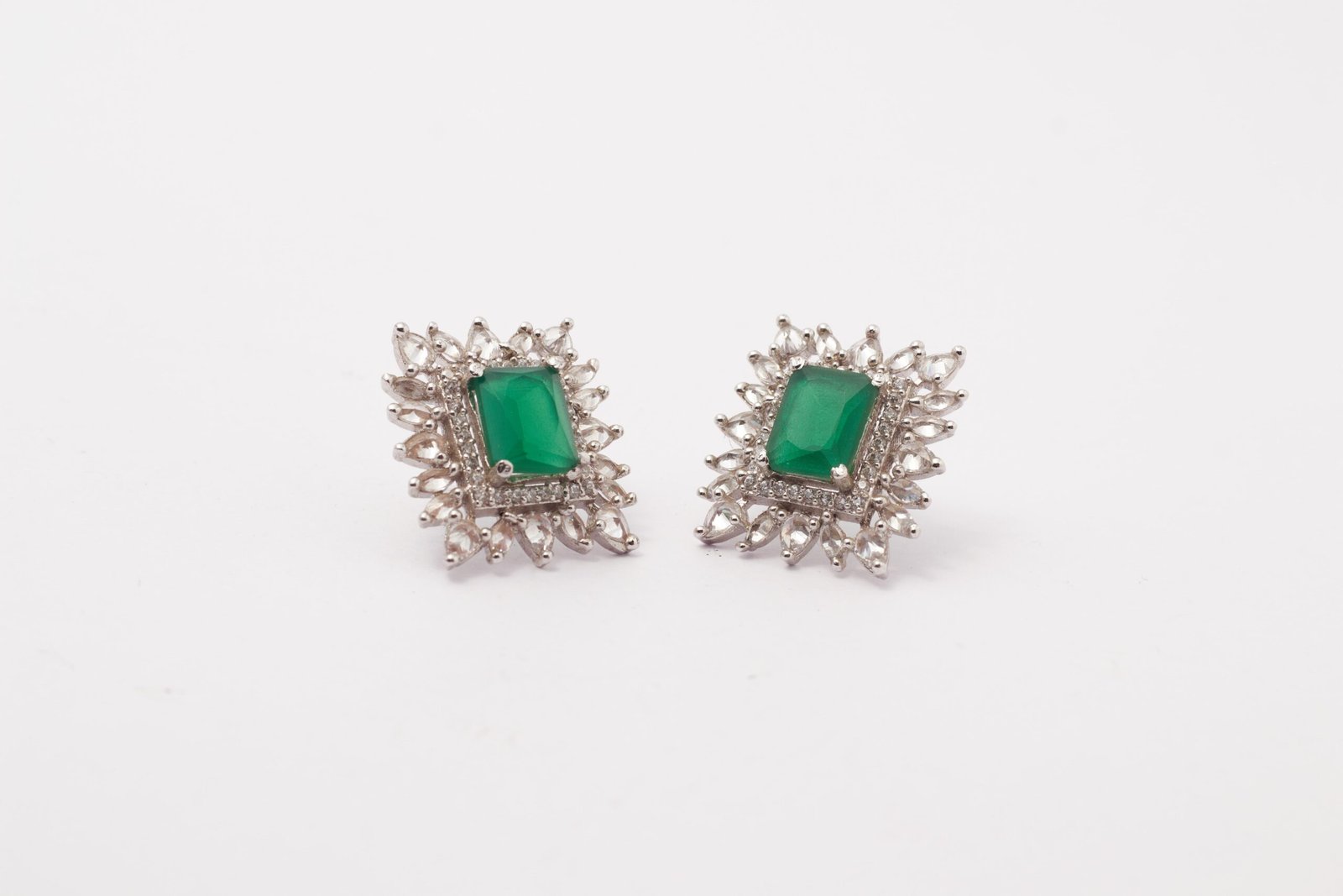 Experience the allure of nature with our verdant studs , embossed with high class zirconia. It has rhodium finish and very classy. It is light in weight and skin friendly too! It goes very well with almost all kind of attires.