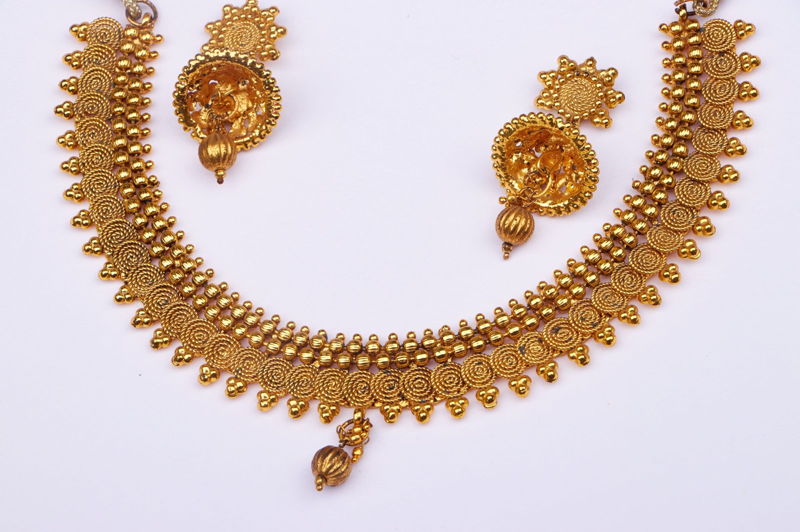 Embrace the allure of timeless elegance with our “Golden Mosaic Harmony Neckset,” a captivating piece distinguished by its golden finish and a uniquely crafted pattern design. The neckset features a seamless interplay of artistry and sophistication, with a golden finish that bathes the entire piece in a warm and opulent glow. The unique pattern design, reminiscent of a mosaic, creates a visual symphony of intricacy and charm. The beauty of this neckset lies in its versatility, making it a perfect complement to a wide range of ensembles. Whether worn with traditional attire or used to elevate modern styles, the “Golden Mosaic Harmony Neckset” effortlessly exudes refinement and grace.