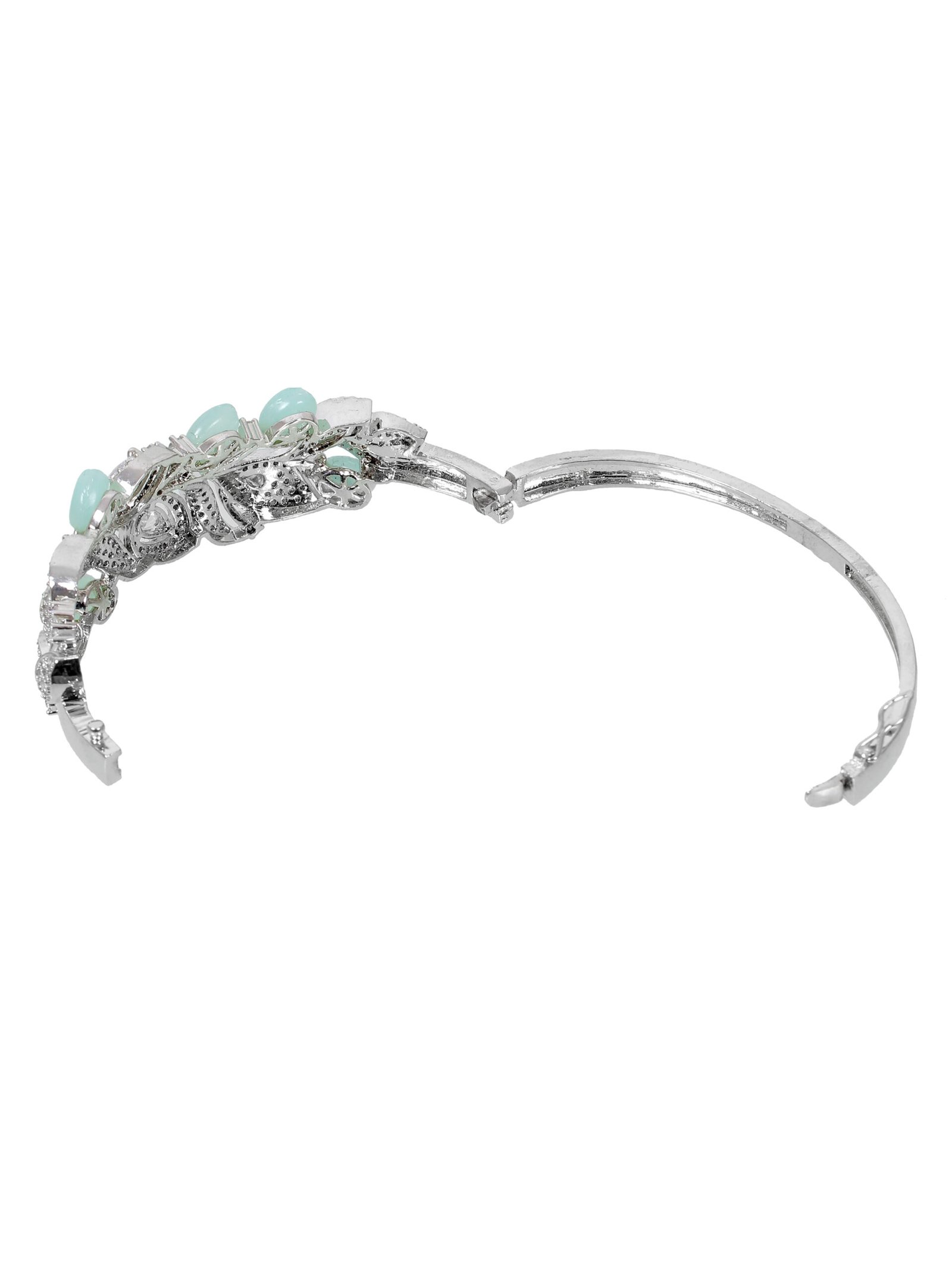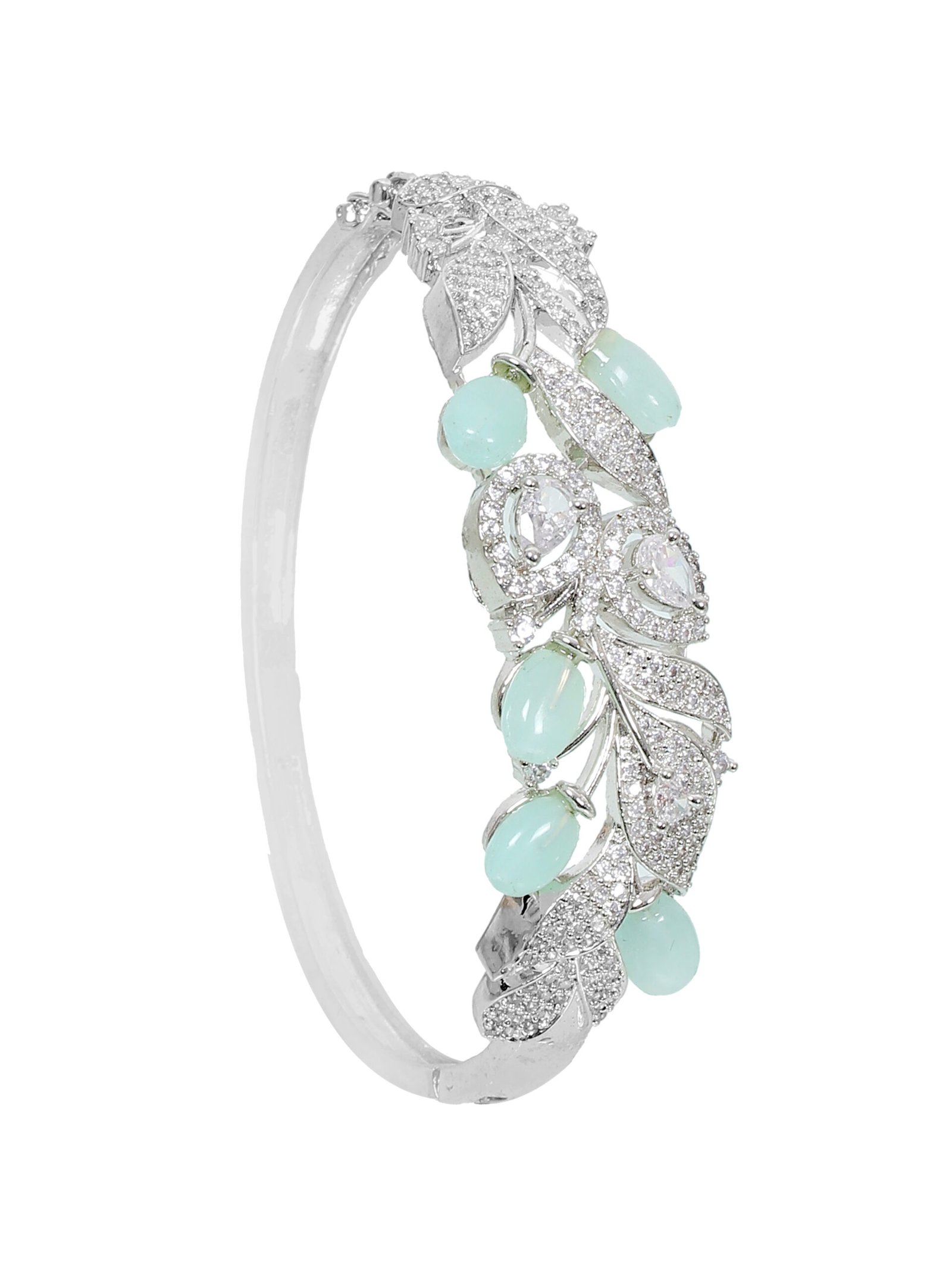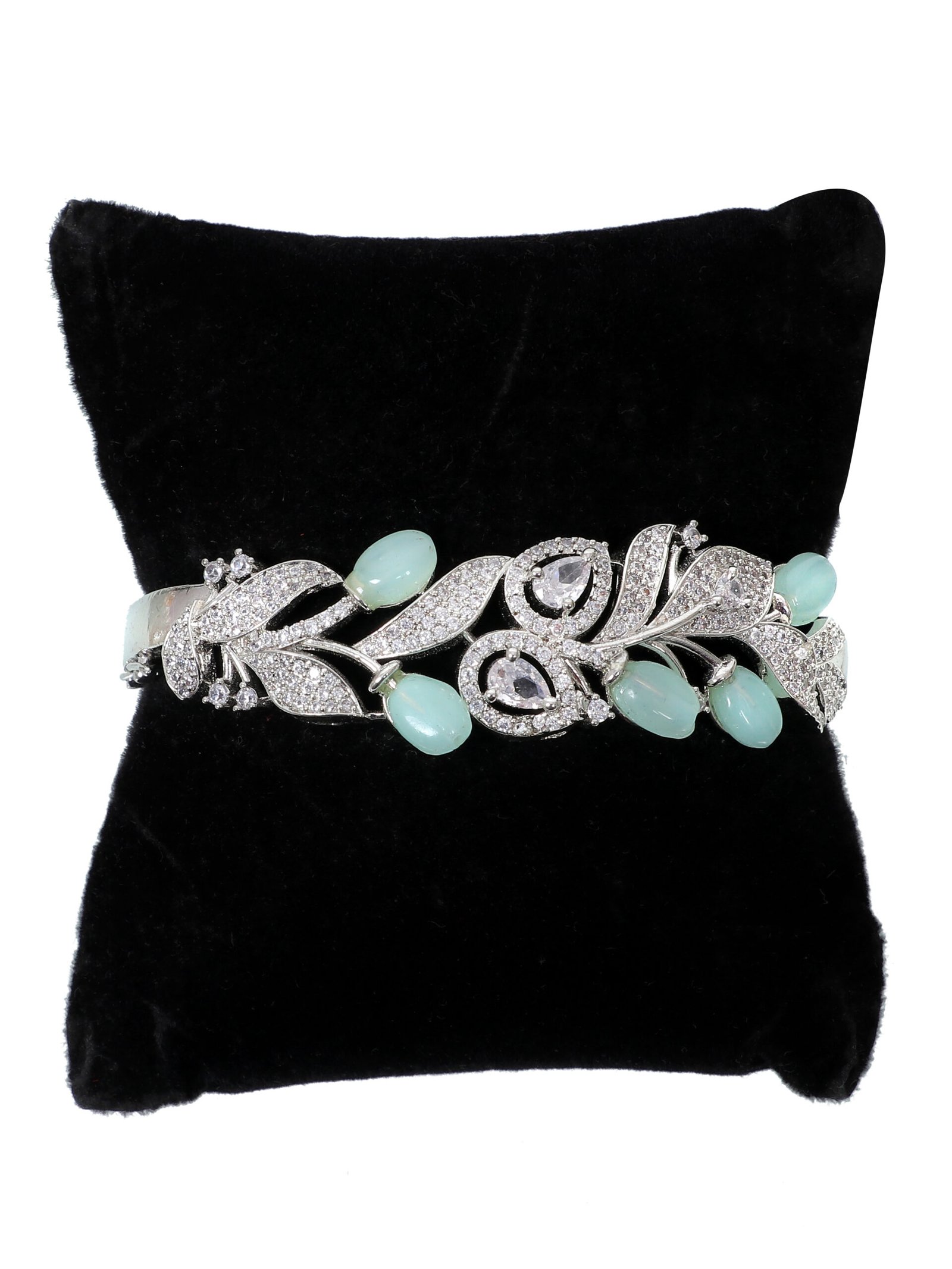 featuring a delicate leaf motif adorned with sparkling zircoina and complemented by soft pastel gemstones, this piece offers elegance for charm. perfect for formal occasions or as a statement accessory, this bracelet is crafted with high-quiaity materials for a refined finish. the adjustable clasp ensures a comfortable fit for all wrist sizes.
