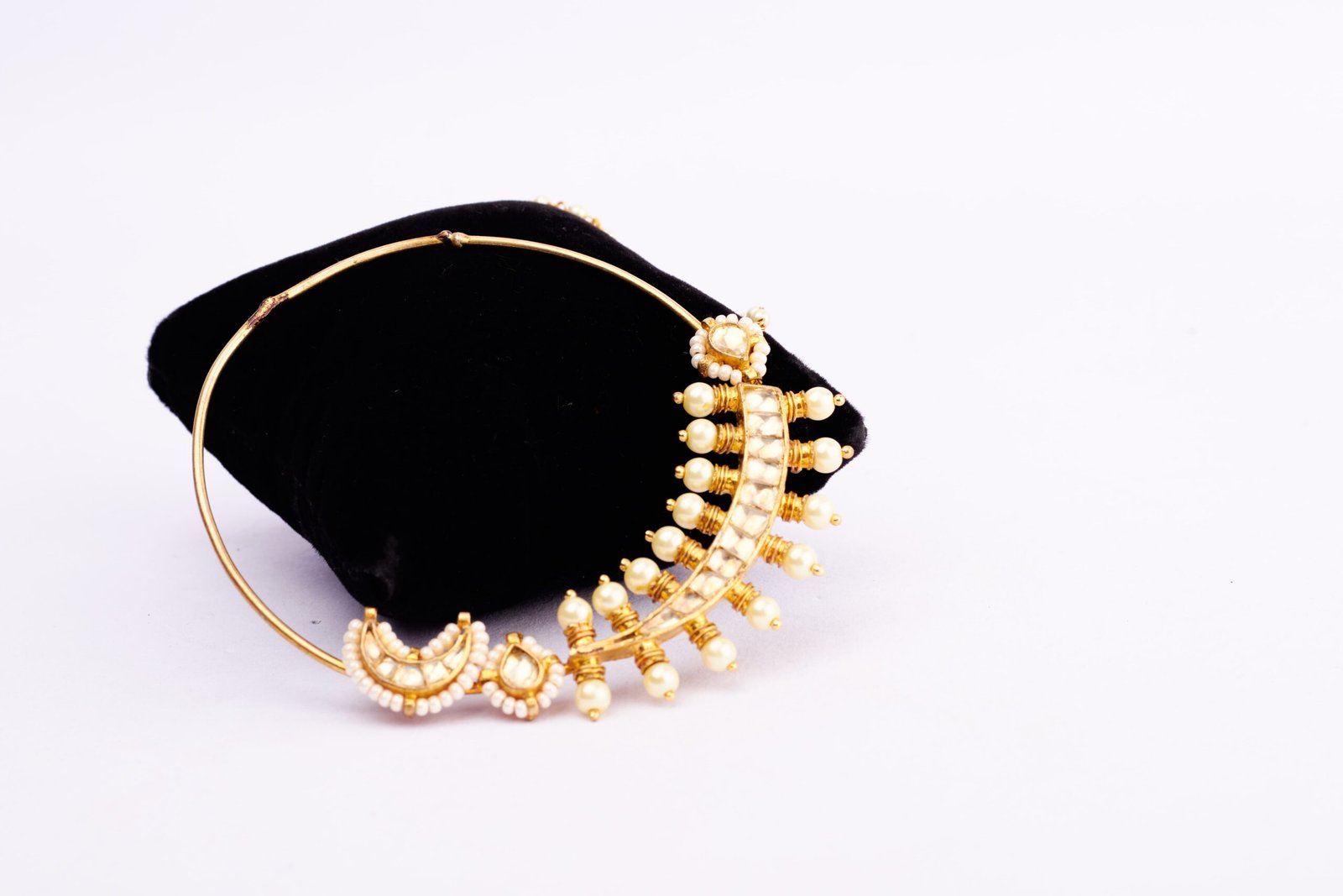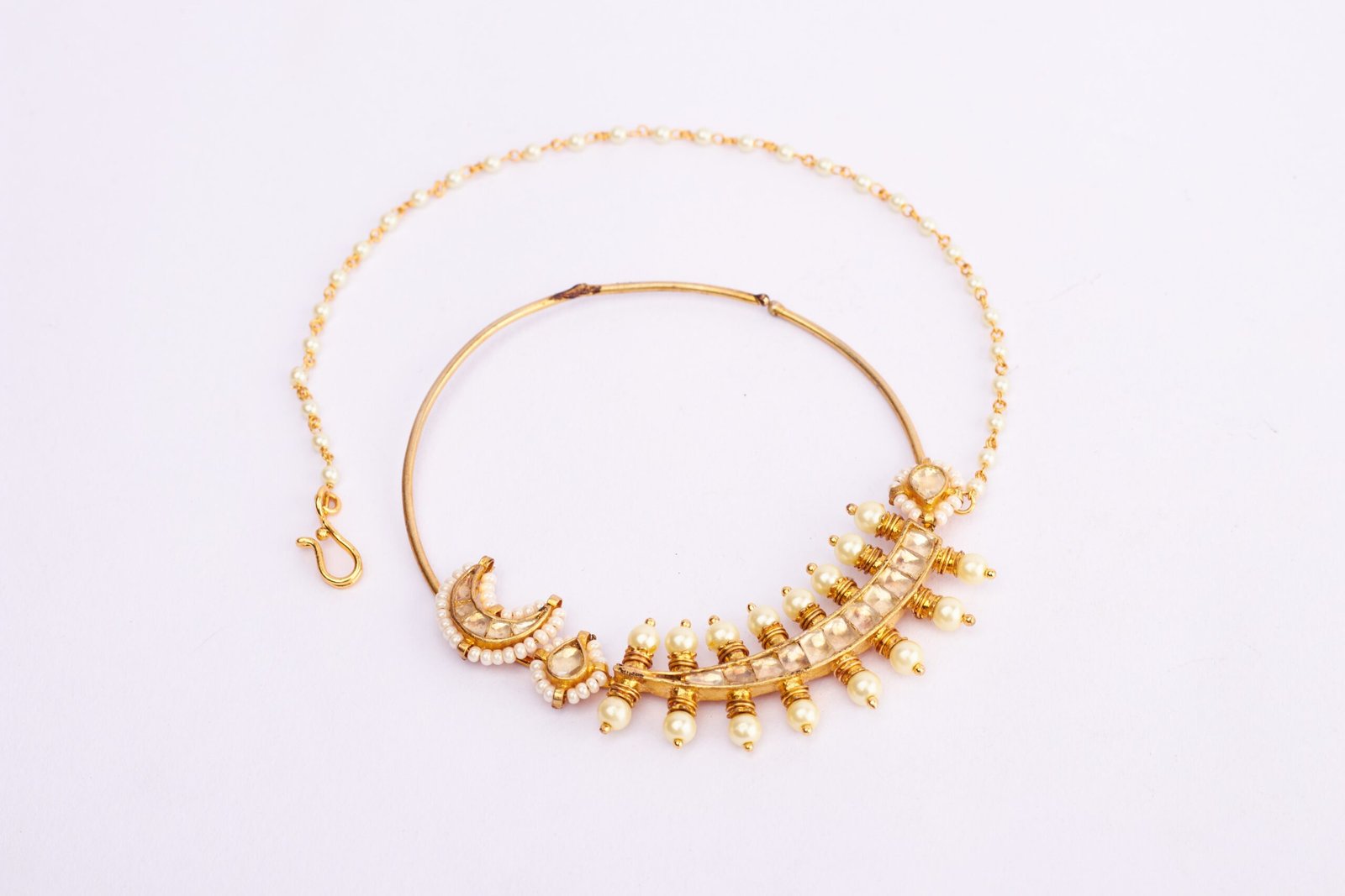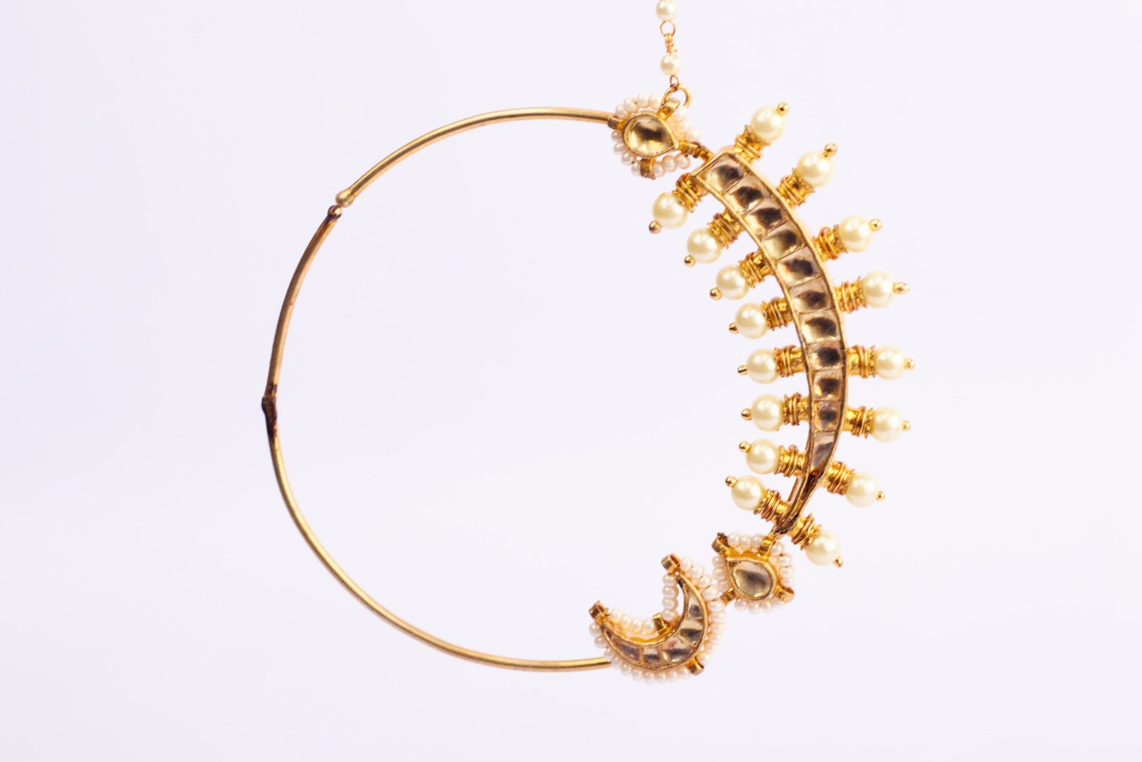 Embrace the regal elegance of Maratha heritage with our Maratha Manikya Nath nose ring. Inspired by the opulence of Maratha jewelry, this exquisite piece features a captivating arrangement of pearls and stones reminiscent of the grandeur of the Maratha era.