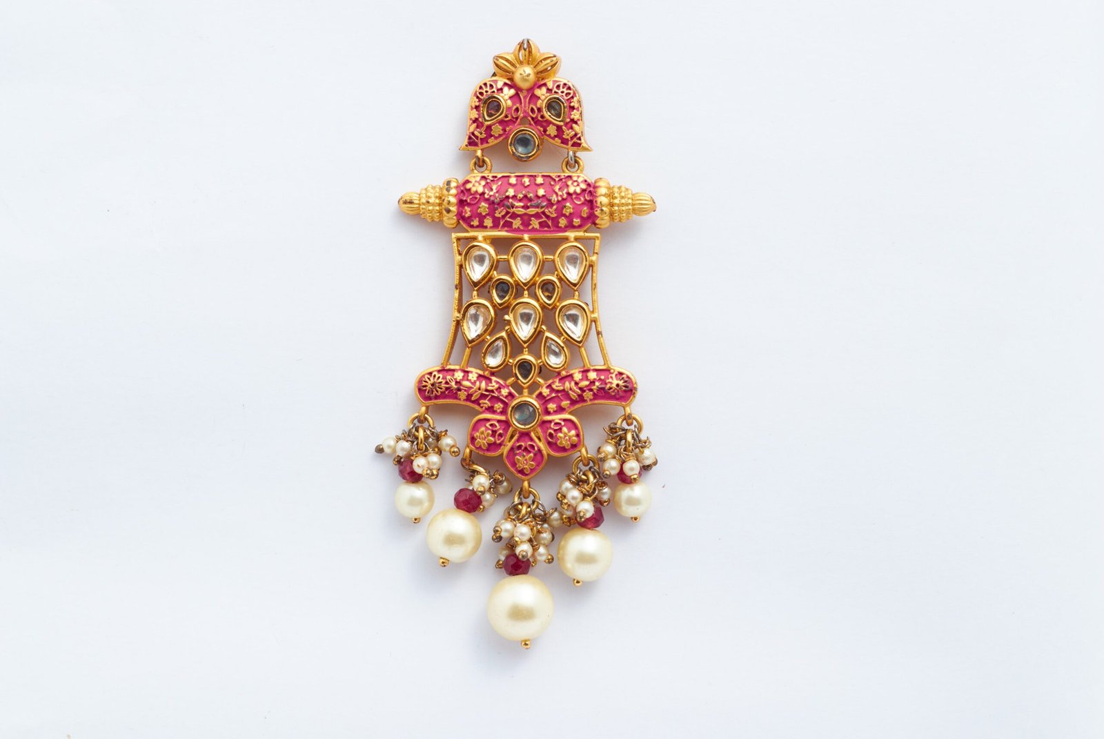 Our ROSE VILANDI earrings are perfect for fashionistas who love to make a statement. Pear Drops with meenakari accents create an ultra glamorous aura sure to get you noticed.