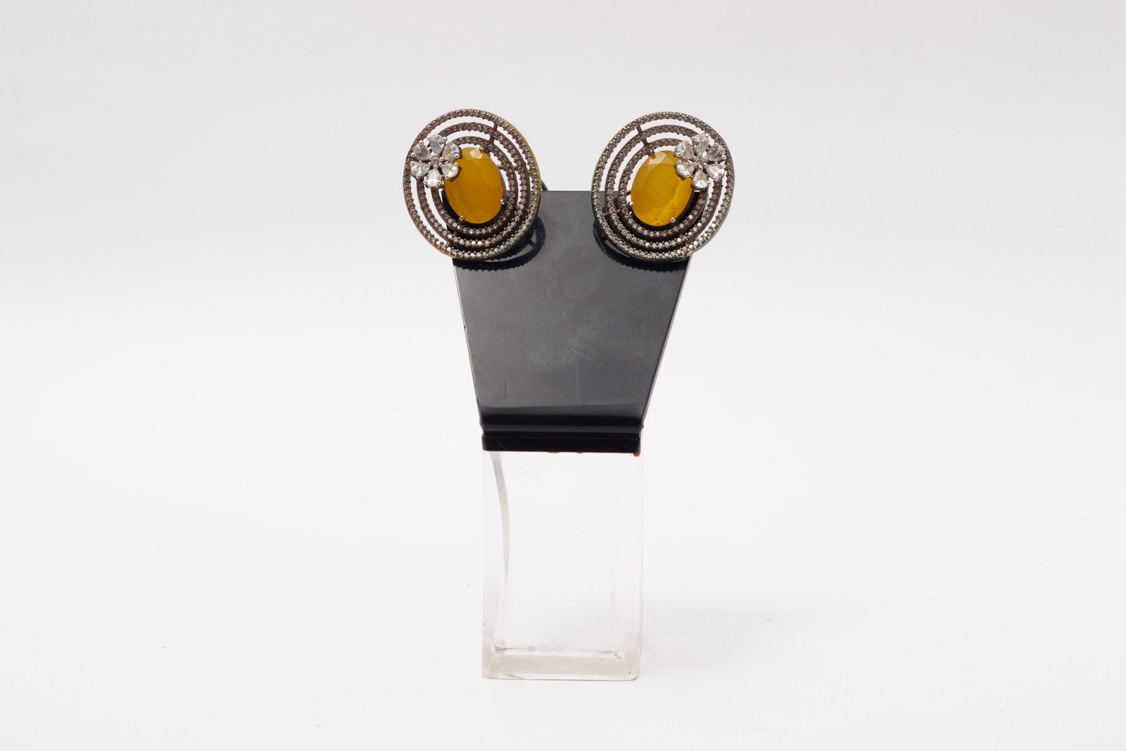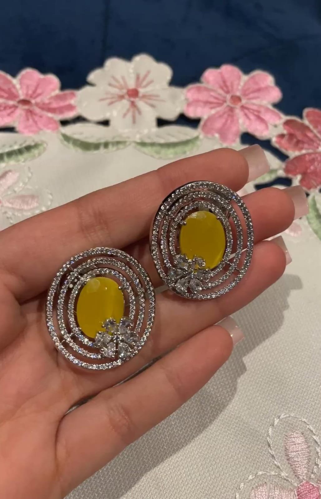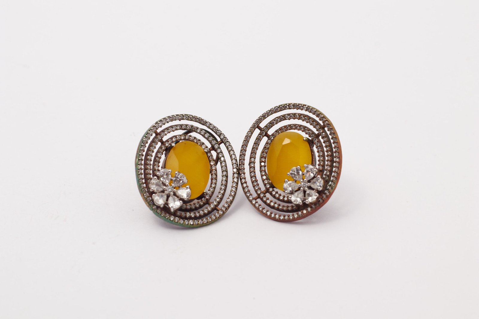 Illuminate your style with the radiant charm of our Sunlit Bloom Zirconia Studs,designed to capture the warmth of a sun-kissed bloom. At the heart of each stud lies a radiant yellow stone, exuding a vibrant energy that evokes the brilliance of the sun. Surrounding the central stone, a halo of shimmering zirconia adds a touch of sparkle and sophistication, enhancing the allure of the design. Delicately crafted in an oval shape, these studs exude elegance and grace, perfect for elevating any ensemble with a touch of luminous beauty.