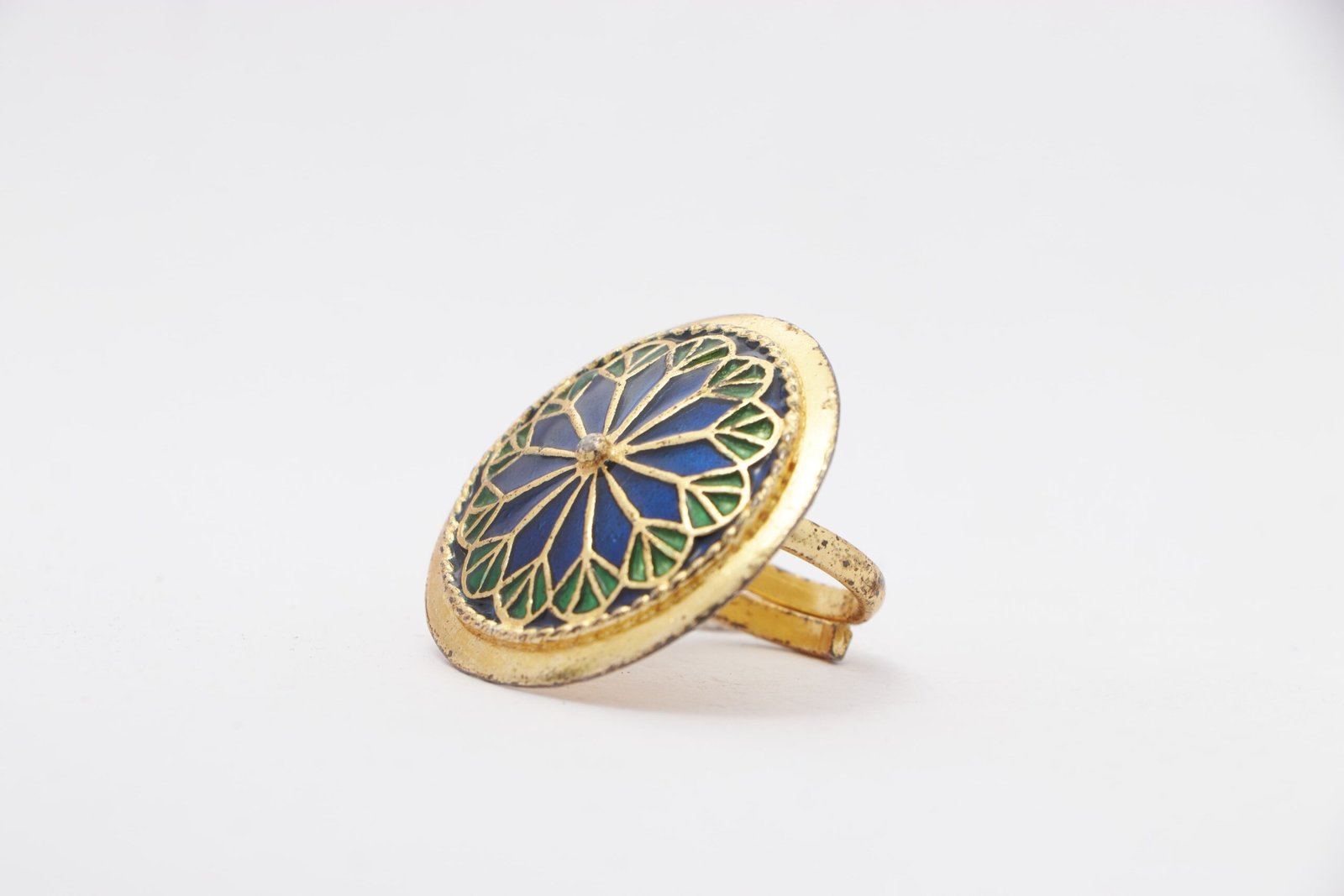 This ring has floral motif of very attractive dual shade which makes it unique.it has gold finish and skin friendly.it goes well with ethnic as well as indo- western outfits.it is undoubtedly a very graceful piece of jewelry!