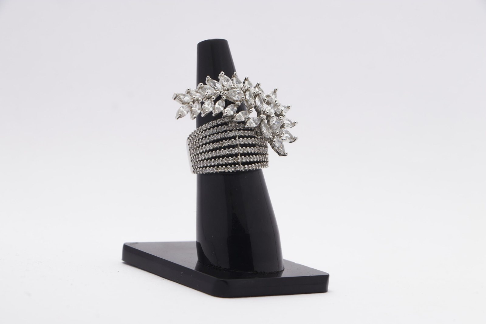 Elevate your style with the Zirconia Elegance Ring a nature-inspired masterpiece where a long leaf design adorned with full zirconia detailing takes center stage, beautifully complemented by small zirconia on the band, all embraced by a sleek silver finish. The elongated leaf design of this ring is a nod to the beauty of nature, intricately crafted with shimmering zirconia stones that capture the essence of glistening dewdrops. The meticulous detailing extends along the entire length, creating a mesmerizing visual appeal. The silver finish provides a cool and contemporary backdrop, allowing the zirconia to sparkle with brilliance. Small zirconia stones on the band add an extra touch of glamour, ensuring that every angle of the ring exudes sophistication.